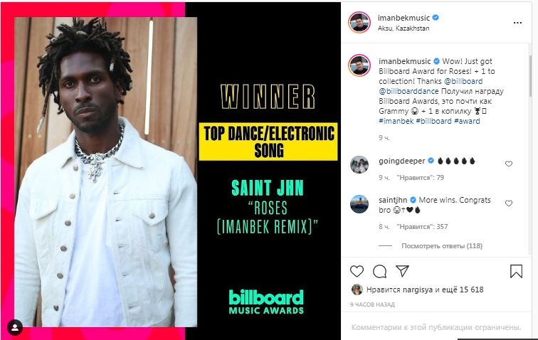Казахстанский диджей Imanbek (Иманбек Зейкенов) рассказал, что стал обладателем еще одной престижной награды, сообщает Sputnik Казахстан.