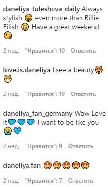 Интереснее всего, что теперь под любыми постами Данэлии появляется огромное количество комментариев на иностранных языках. И все иностранцы, естественно, восхищаются талантом юной певицы.