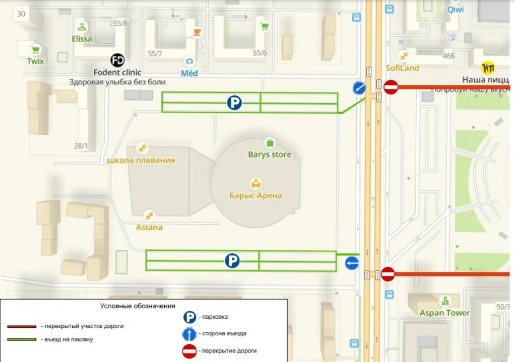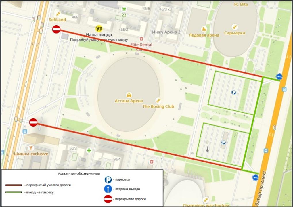 Для зрителей футбольного матча – движение будет осуществляться только через проспект Қабанбай батыр.