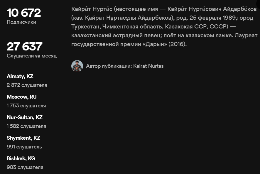 Такую разницу в цифрах можно объяснить тем, что, вероятно, основную часть слушателей Кудайбергена до сих пор составляет китайская аудитория, а не западная. Поэтому статистика на китайских площадках гораздо выше, чем на международных.