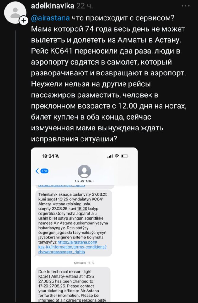 Добавим, что перенос и неудовлетворяющий пассажиров уровень сервиса, судя по растущему количеству жалоб (даже от лояльных клиентов), понемногу как будто становятся нормой для Air Astana. Очень жаль.