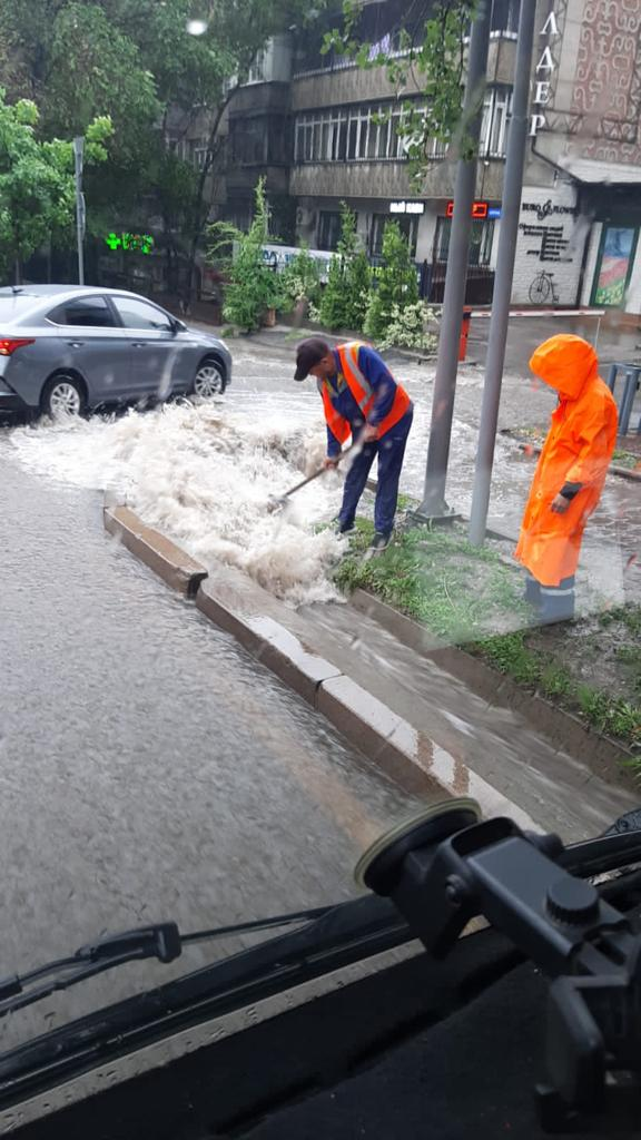 11 мая над южной столицей снова пролился сильный дождь, и жители города начали делиться видео, на которых вода выходит из арыков и бурными потоками несётся по дорогам и тротуарам. Вот, например, барахолка и другие места: