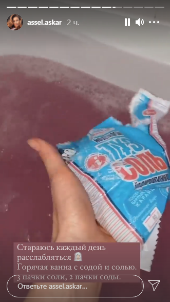 Сообщила, что старается больше расслабляться каждый день, и показала, как готовит себе ванну с содой и солью:
