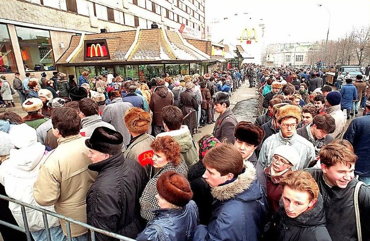 Естественно, все желающие поесть буржуйских гамбургеров не могли поехать в Москву только ради этого. Да тогда не шло и речи о том, чтобы перекусить быстро и дешево, как это требуется от фастфуда. В «Макдональдс» стояли километровые очереди, а комбо стоил как целая неделя питания в столовой.