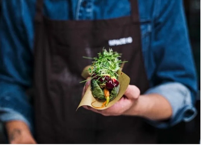 Тем не менее ситуации, когда голод напал на улице, а времени и денег на приличное заведение не хватает, никуда не делись. Это открыло новую нишу для предпринимателей. Так стали появляться точки, где можно быстро и недорого перекусить чем-то явно полезным, например, творожным муссом с семенами чиа или фалафелем под соусом из йогурта и зелени.