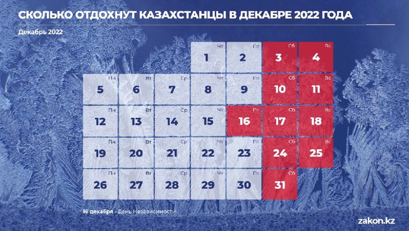 Таким образом, в декабре казахстанцы на День Независимости будут отдыхать: