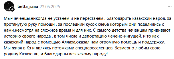 Многие погибли в первые годы после высылки, но те, кто спасся, до сих пор с большой благодарностью вспоминают помощь казахов и кыргызов, которые тепло встретили вынужденных переселенцев и помогли им выжить, пишет Caravan.kz.