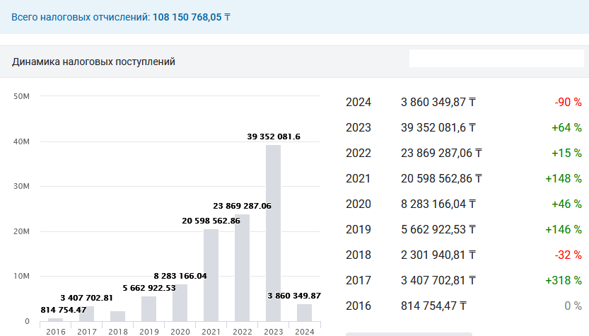 В целом можно сказать, что дела у ТОО идут отлично, что можно понять по динамике налоговых отчислений. За первые месяцы 2024 года ТОО уже заплатило налогов больше, чем за весь 2017 или 2018 год.