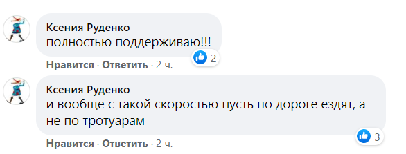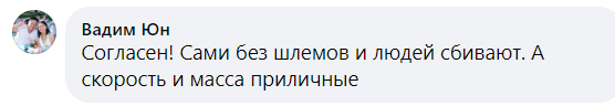 "Полностью поддерживаю", "С такой скоростью пусть по дорогам едут, а не тротуарам", "Сами без шлемов и людей сбивают. А скорость и масса приличные", — поддерживают автора публикации комментаторы.