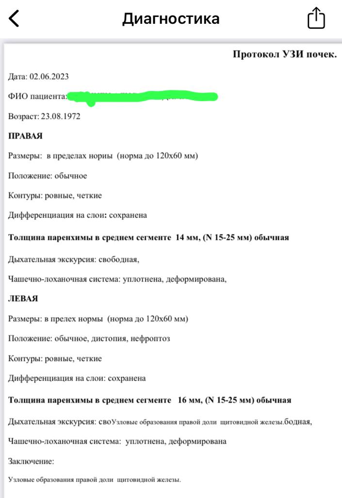 Кстати, до этого со мной уже происходил казус с УЗИ-обследованием в поликлинике (об этом мы рассказывали ранее). Специалист, работающий много лет в этом медучреждении, проводил УЗИ почек. Полученное заключение, мягко говоря, ввергло в шок. УЗИст смотрел почки, а заключение дал по щитовидной железе (на фото).