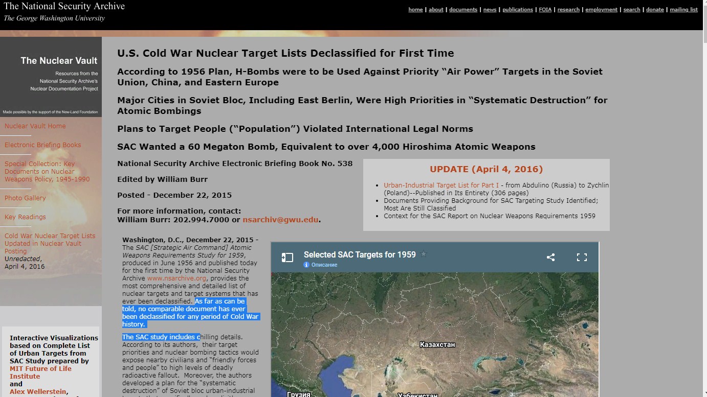 Три года назад министерство обороны США опубликовало рассекреченные списки ядерных целей на территории СССР и стран
