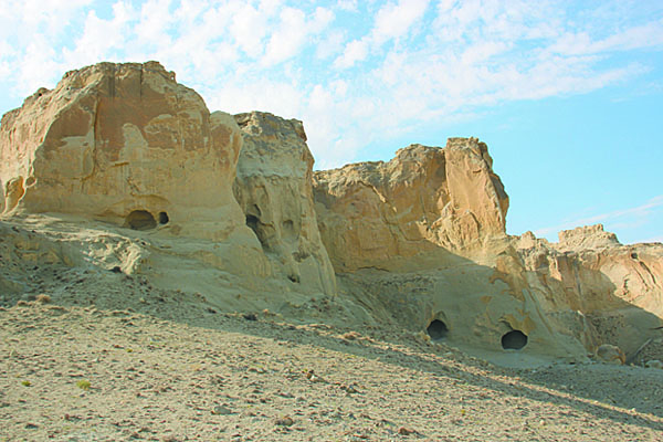 В переводе с персидского Шеркала означает “Львиная крепость”. С определенного ракурса гора и правда похожа на гривастого льва, который прилег отдохнуть, положив голову на лапы. Именно с этого ракурса Шеркалу и видели сотни караванщиков, останавливавшихся тут на ночлег. На теле “льва” можно отыскать небольшие пещеры, служившие “гостиничными номерами” для караванщиков. Углубления выбивались вручную. Видимо, отель считался по тем временам пятизвездочным, потому что, кроме комнат для сна, тут есть и молельные комнаты, а за дополнительную плату путнику могли принести главный деликатес пустыни – кувшин с прохладной водой. Что любопытно: колодец находится на самой вершине горы, а добраться туда и сейчас можно только с хорошим альпинистским снаряжением.