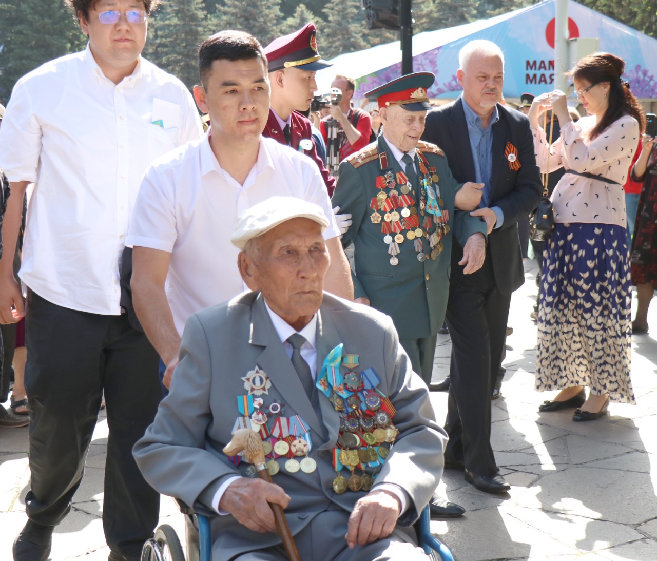 Алматинцы чествуют ветеранов ВОВ и вспоминают павших на фронте героев.