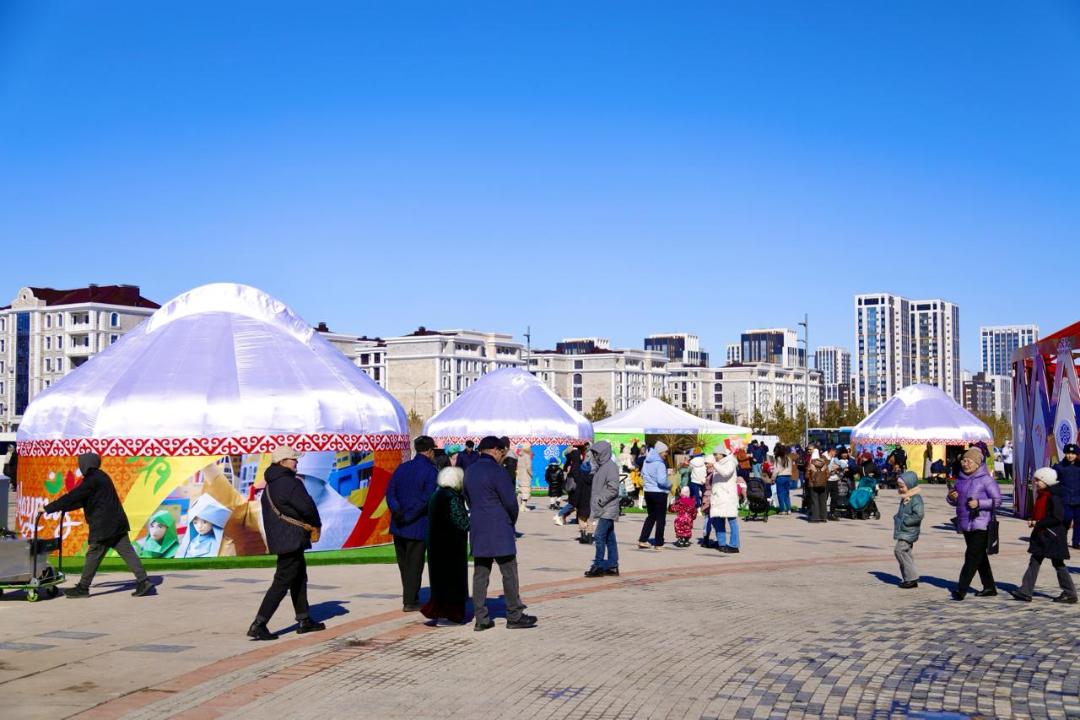 Так, на центральной площади столицы, у монументов Қазақ елі и Байтерек, на территории столичного парка и площадке EXPO с раннего утра звучит праздничная музыка, готовятся традиционные угощения, идут соревнования по национальным видам спорта, для победителей предусмотрены ценные призы и памятные подарки. Участники соревнуются в поднятии гири, армрестлинге, перетягивании каната, асык ату, казакша курес, кой котеру и т.д.