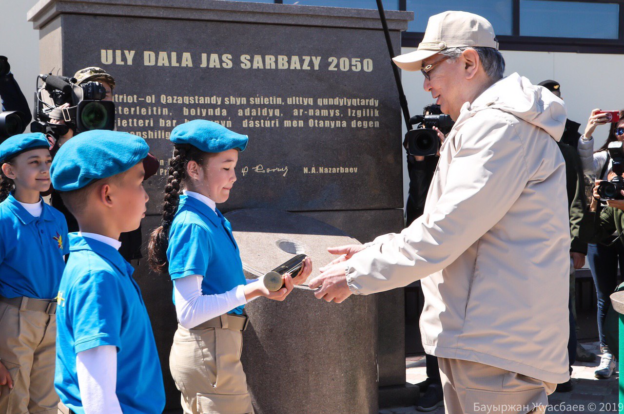 — Капсулу времени «Ұлы дала Жас сарбазы-2050» воспитанники движения «Жас сарбаз» заложили на открытии пятого Республиканского военно-патриотического сбора молодежи «Айбын» в 2019 году вместе с Президентом Республики Казахстан – Верховным главнокомандующим Вооруженными силами Касым-Жомартом Кемелевичем Токаевым. О том, что было замуровано в капсуле, узнаем в 2050 году (улыбается). Пока это секрет для всех.