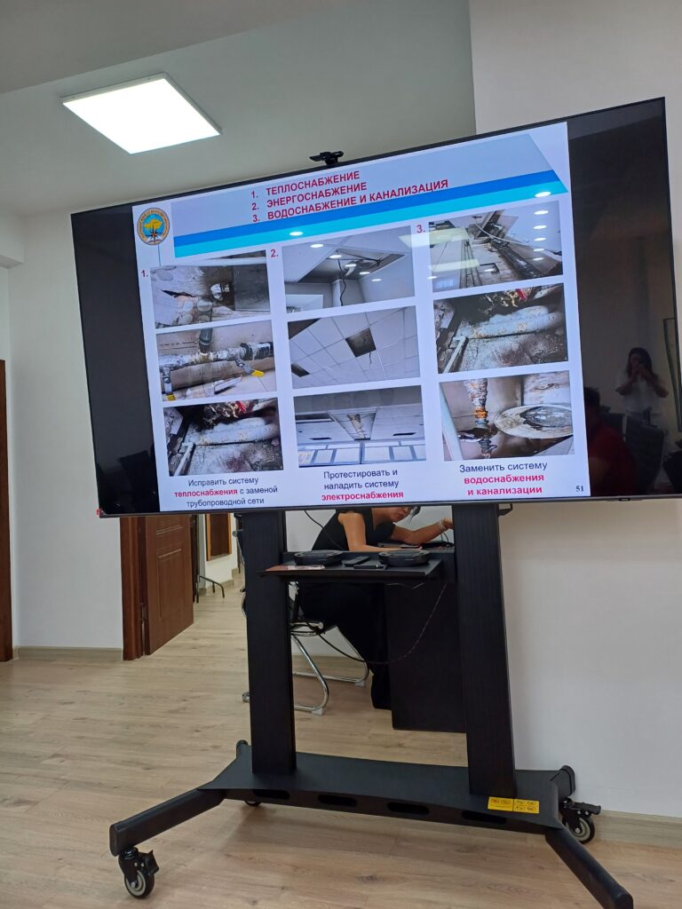 Директор научного учреждения Ахметкал Медеу рассказал, что здание досталось им в не самом лучшем состоянии. Из-за вопросов с теплоснабжением, электро и водоснабжением, состоянием кабинетов и капитальных перекрытий, отсутствия вентиляции зданию требовался капитальный ремонт, который в некоторых корпусах еще продолжается.