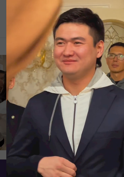 На торжестве также присутствовал сам Торегали Тореали, который контрастировал с окружающими мужчинами в рубашках, надев под пиджак серую спортивную кофту с капюшоном.