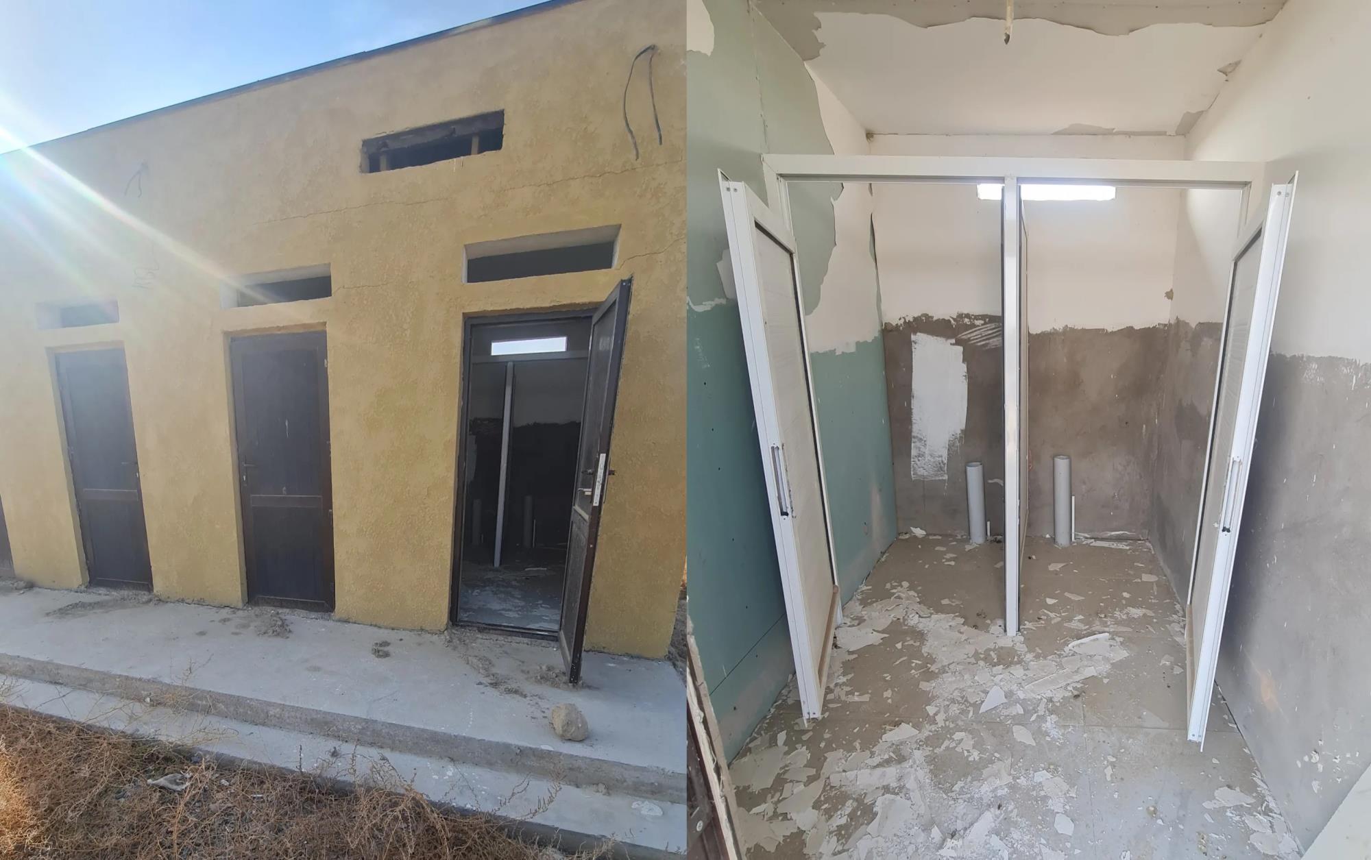 Насосная станция недостроена и укрыта резиной. Заботливые охранники также спасают дорогостоящий глубинный насос от дождя с помощью урны.