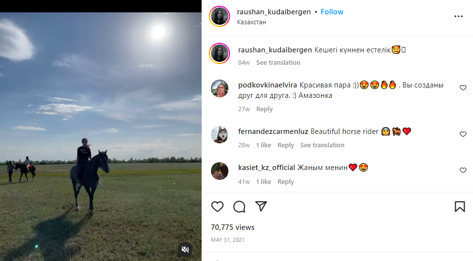 Также она любит лошадей и умеет ездить верхом: