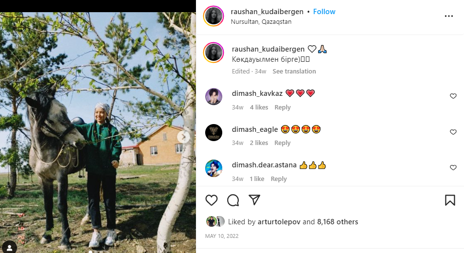 Она не очень активно ведет социальные сети, но в них очень много Димаша: