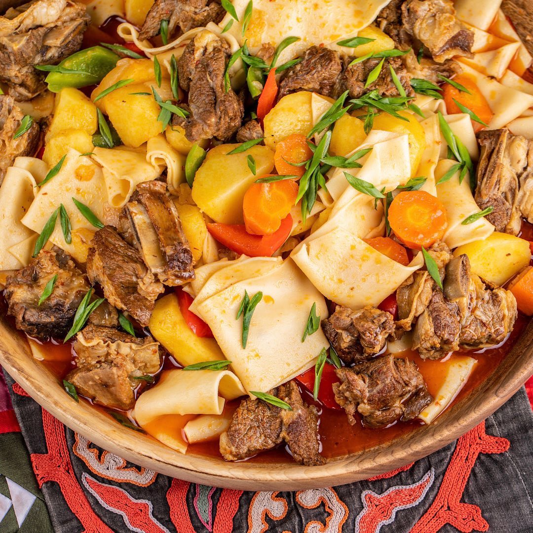 И у братского кыргызского народа есть вкуснейшее блюдо, похожее на казахский ет тамак. Оно называется гюльчатай, и вот как его описывают на сайте популярного бишкекского ресторана «Ала-тоо», так, что слюни текут.