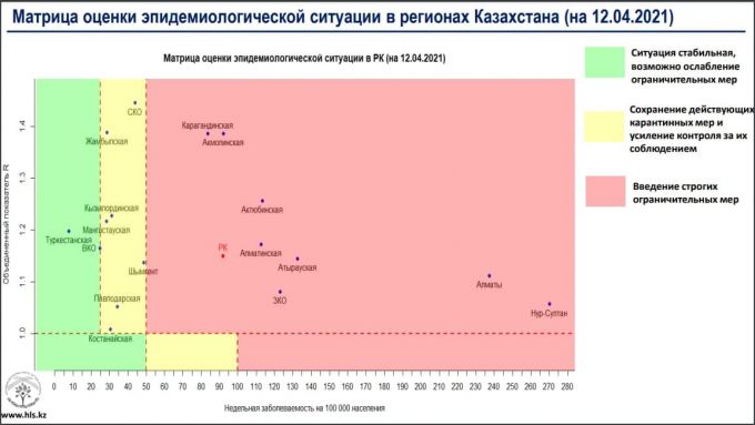 Опубликована матрица оценки эпидситуации в Казахстане, передает Caravan.kz.