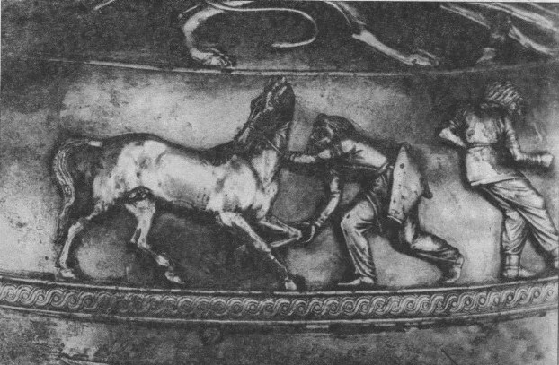 Сюжет жертвоприношения коня, когда несчастное животное душили специальной удавкой, часто встречается на греческих амфорах. Эллины считали этот варварский ритуал кочевников экзотичным.