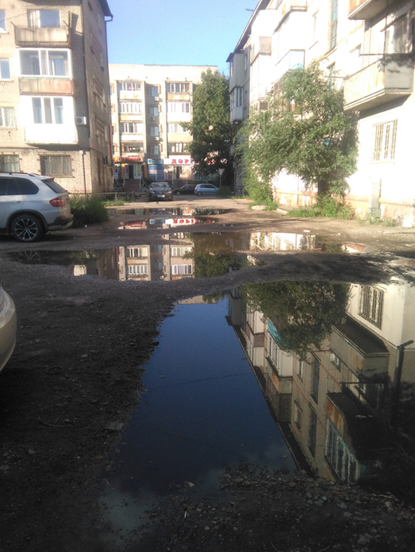 Вот и сейчас очередной порыв превратил двор 3 домов в сплошную лужу. И даже сливную трубу с крыши музея отчего-то умудрились вывести прямо на тротуар. Сейчас, во время традиционных осенних дождей, вода течет по пешеходному пути тихой речкой. Но уже в ближайшие дни Семею обещают понижение температуры и снег. Вчерашние дождевые ручьи станут катком, не упасть на котором можно, только цепляясь за “украшенный” птицами забор. И даже на дуэль вызвать некого!