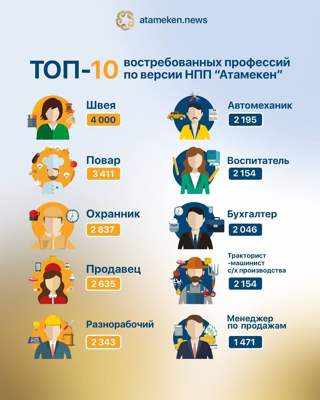 В национальной палате предпринимателей "Атамекен" провели опрос, чтобы выявить топ-10 востребованных профессий в Казахстане, передает медиа-портал Сaravan.kz.
