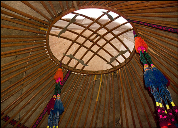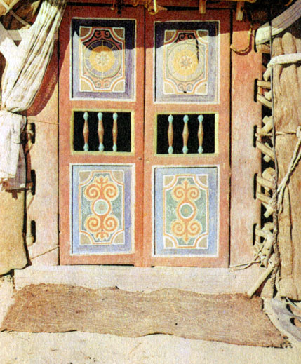 Юрта по вертикали олицетворяла вселенную, состоящую из трех ярусов – верхнего, среднего и нижнего миров, где живут ангелы и аруахи, люди и дьяволы соответственно.