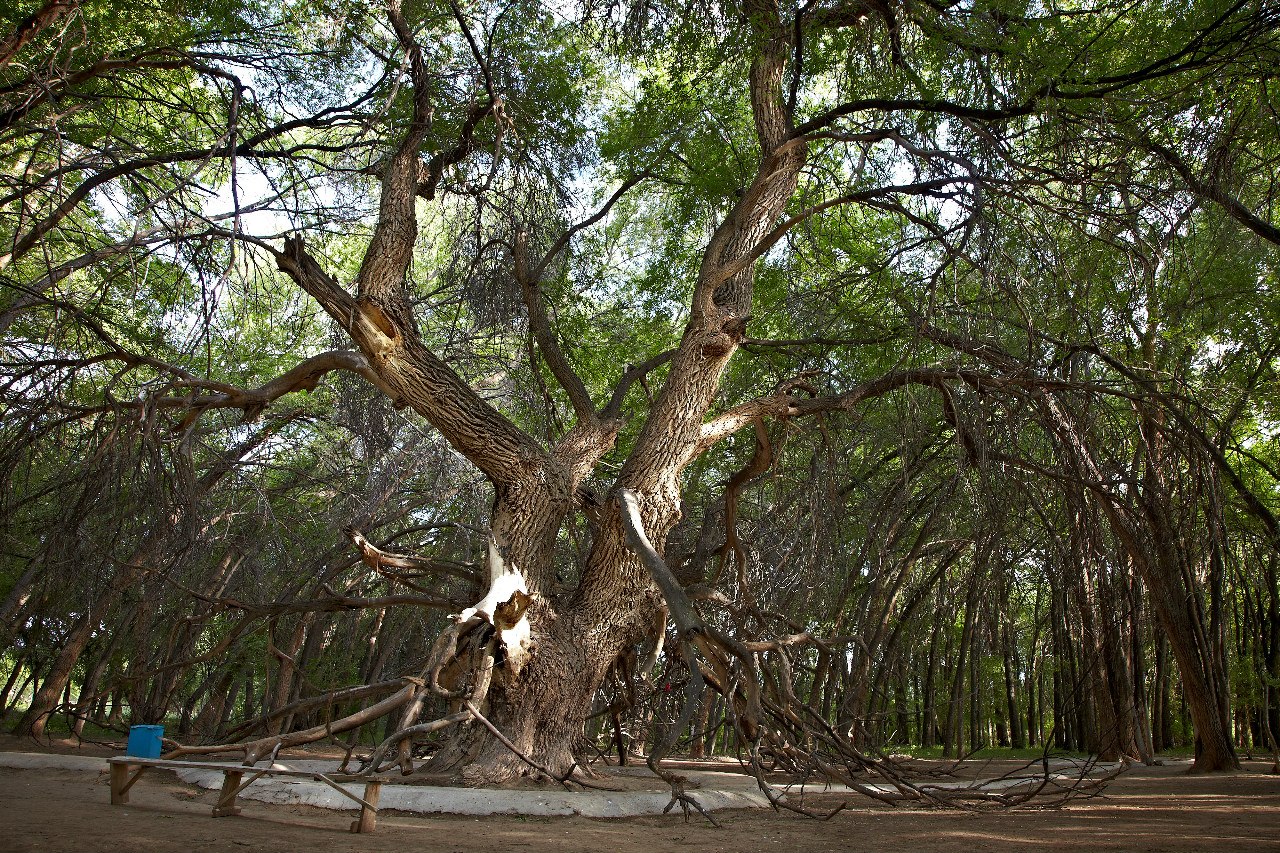 В Алматинской же области находится 700-летний карагач, известный как Аулие-Агаш (святое дерево) или Улкен-Агаш (большое дерево). Сюда часто приходят в поисках душевного покоя.