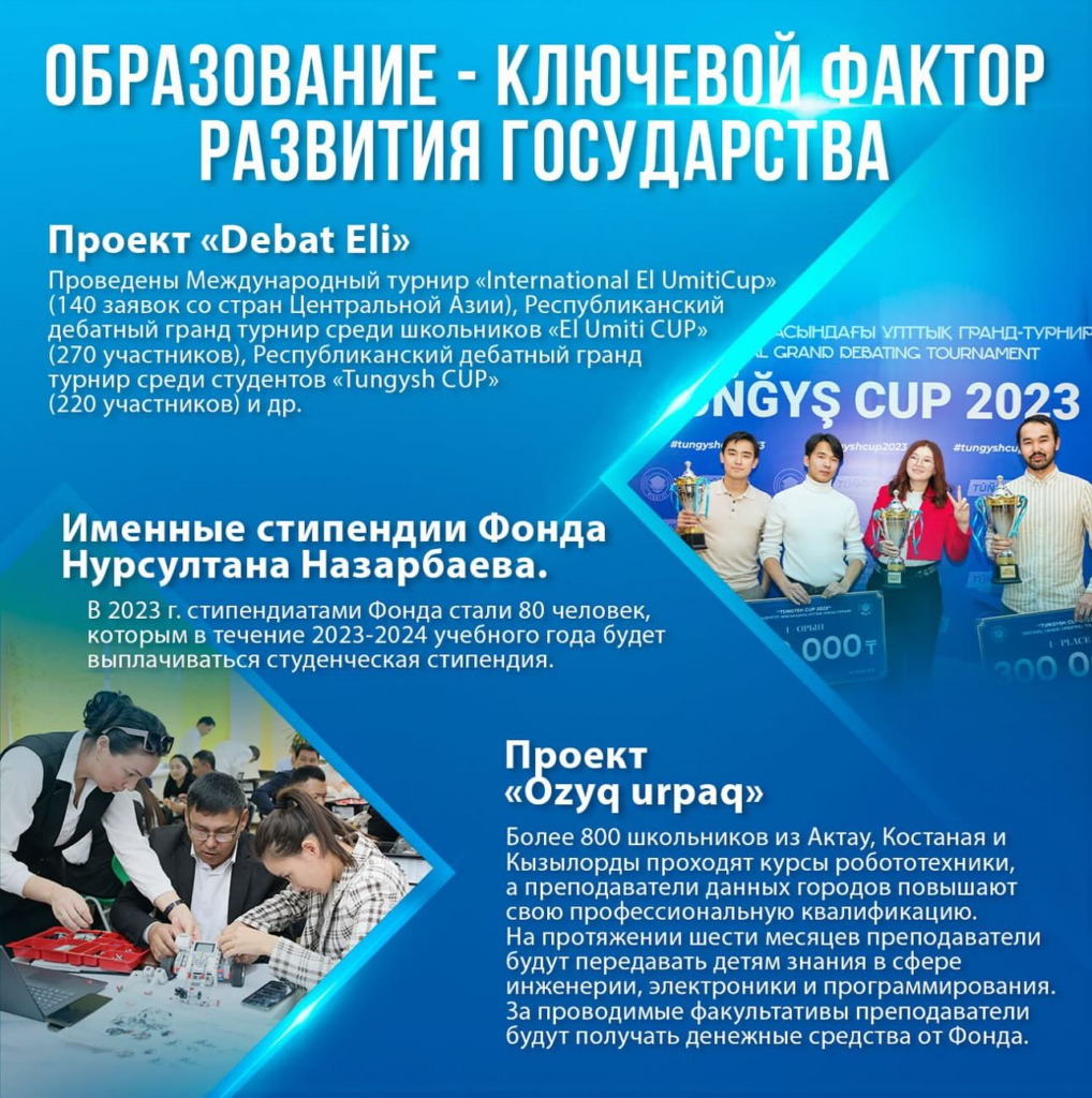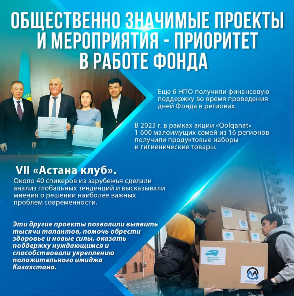 Благодаря поддержке партнеров Фонду в уходящем году удалось выявить тысячи новых талантов нашей страны, оказать реальную помощь нуждающимся и способствовать укреплению положительного имиджа Казахстана.
