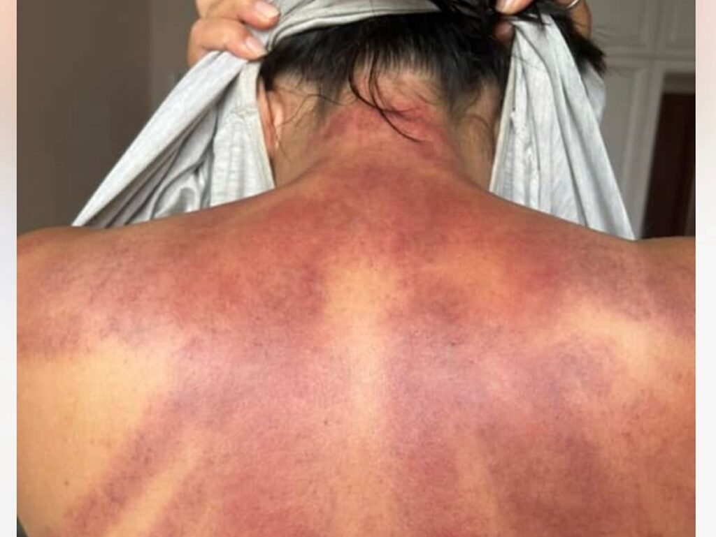Женщина сообщила, что 12 августа посетила один из медицинских центров для сеанса массажа, и в результате получила травмы. По её словам, после процедуры вся спина оказалась в синяках, «не осталось живого места». На снимках, предоставленных женщиной, ее спина и задняя часть шеи действительно покрыты следами похожими на крупные кровоподтеки.