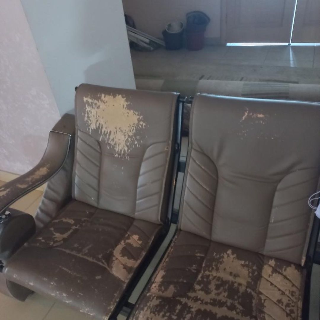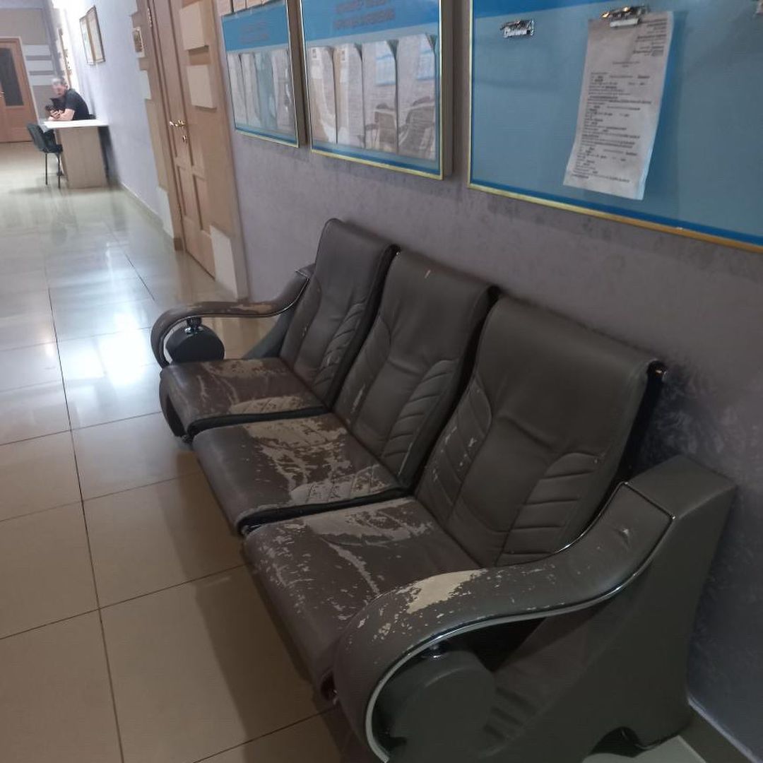 Автор обращения также опубликовал фотографии действующего ЗАГСа, продемонстрировав нуждающееся в косметическом ремонте здание, старые протертые сиденья и заваленный вещами проход.