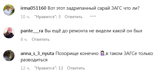 "Давайте поднимем вопрос о РАГС/ЗАГС! Это просто позор для города. На фото Чкалова, 7. Так жаль брачующихся. Кстати, коллектив неплохой. Власти города 10 лет назад обещали отстроить новый ЗАГС в Этнопарке, а в итоге почему-то вместо дворца бракосочетаний построили частный ресторан. Обманули горожан! Я точно помню, что они обещали ещё и колонны от летнего театра там сохранить. На каком основании у частного лица ресторан в парке? Как он там получил участок? Ранее ЗАГС арендовал у них помещение, но несколько лет назад вернулись в старое здание, но планировалось строительство нового дворца бракосочетания! Кто ответит и внесет ясность? Это действительно позор для властей города, что до сих пор не могут определиться с таким местом и сделать все по-человечески!» — говорится в сообщении, опубликованном одним из местных активистов.