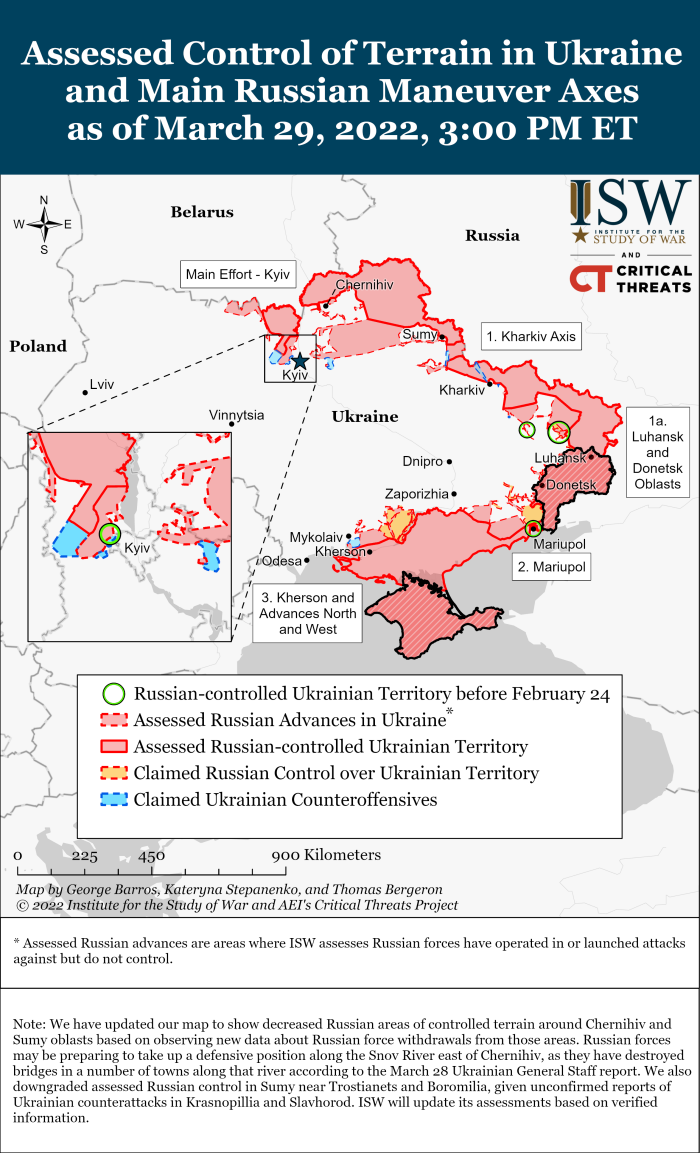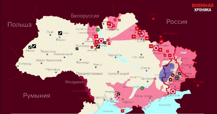Сайты telegraf.com.ua и 9111.ru выложили карты боевых действий в Украине по состоянию на 30 марта, передает медиа-портал Сaravan.kz.