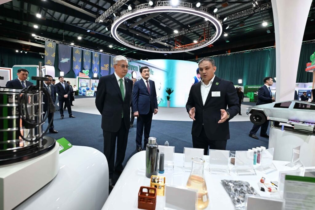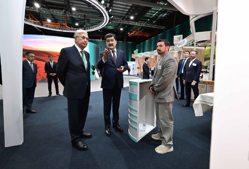 Касым-Жомарту Токаеву была представлена тематическая выставочная экспозиция, включающая секции по управлению отходами, проекты промышленных предприятий, стартапы в сфере экологии, школьные экологические инициативы, а также детские художественные работы на экологическую тематику.
