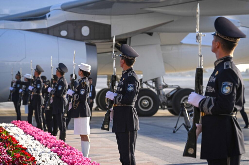 В аэропорту «Восточный» в честь высокого гостя была выстроена рота почетного караула.