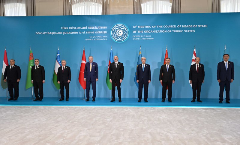 Также, состоялось совместное фото Президента с участниками XII саммита Организации тюркских государств.