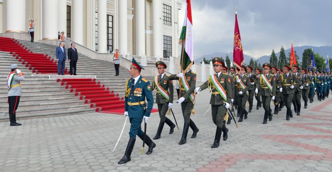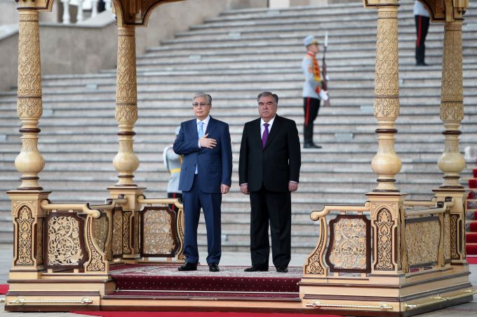 Как сообщается, переговорам на высшем уровне предшествовала официальная церемония встречи главы нашего государства, которая началась с приветственного рапорта начальника почетного караула и исполнения государственных гимнов двух стран. Президент Казахстана отдал дань уважения государственному флагу Таджикистана. Затем Касым-Жомарт Токаев и Эмомали Рахмон прошли вдоль строя почетного караула и представили друг другу членов официальных делегаций. По завершении церемонии состоялась встреча в узком формате, сообщает Акорда.