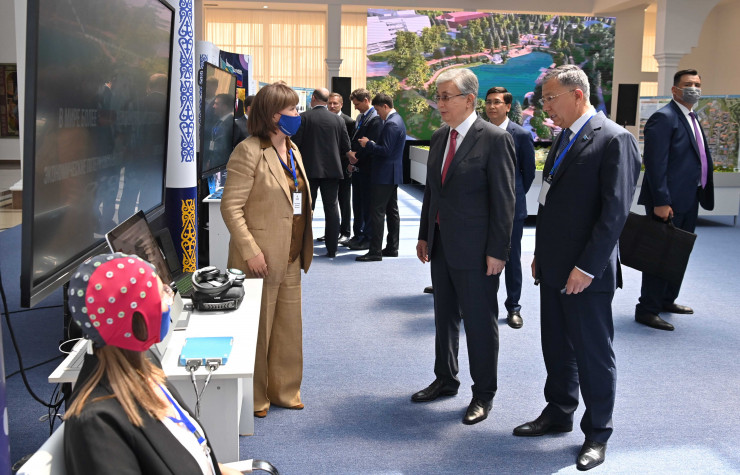 Затем Касым-Жомарту Токаеву презентовали выставку научных достижений и инновационных разработок. Ученые и студенты рассказали Главе государства о возможностях своих научно-инновационных проектов в сферах нейронауки, здравоохранения, туризма, агрохимии, строительных технологий, искусственного интеллекта и биотехнологий.