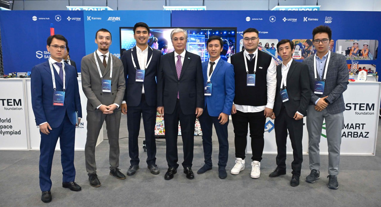 В зоне робототехники глава государства побеседовал с членами сборной Казахстана по робототехнике, являющимися чемпионами многих соревнований, и ознакомился с проектами Ustem Foundation, Alem School, MakerSpace.