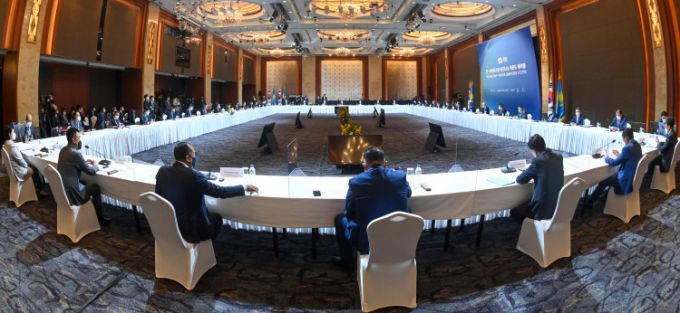 Модератором "круглого стола" выступил председатель Корейской международной торговой ассоциации KITA Кристофер Ку. В качестве спикеров выступили председатель АО "ФНБ "Самрук-Казына", министр торговли, индустрии и энергетики Республики Корея, а также руководители корейских компаний Samsung Electronics, Doosan Heavy Industries&Construction, Hyundai Engineering & Construction, Dongil Construction, Lotte Confectionery, BC Card, Seegene Medical Foundation, Korea Health Industry Development Institute (KHIDI), Dongkwang Trading Corporation и Kolon World Investment.