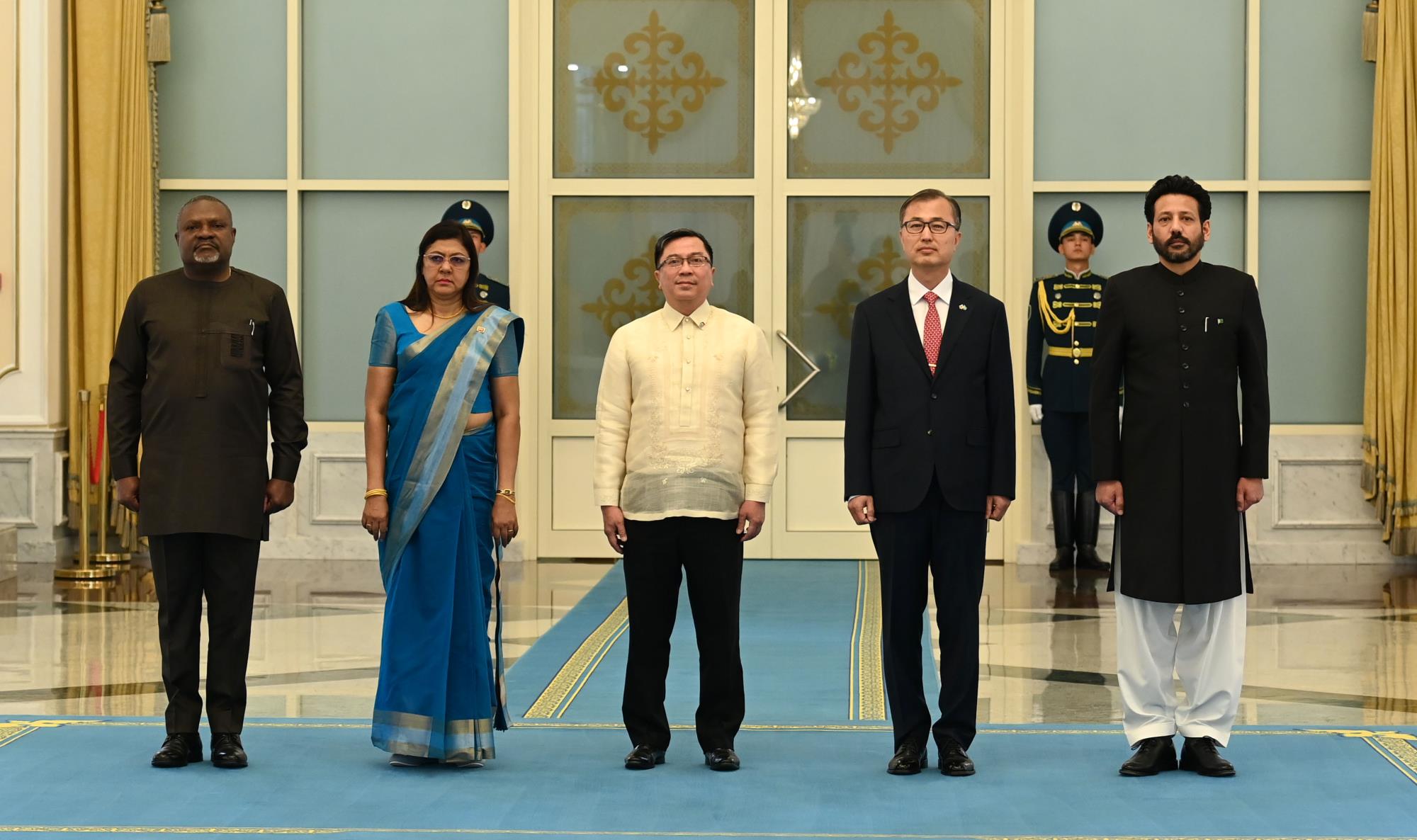 Верительные грамоты вручили посол Исламской Республики Пакистан Науман Башир Бхатти, посол Республики Корея Тэ-ик Чжо, посол Республики Филиппины Игорь Гарлит Байлен, посол Демократической Социалистической Республики Шри-Ланка Джанита Абейвикрема Лиянге и посол Республики Ангола Аугушту Да Сильва Кунья, пишет Caravan.kz