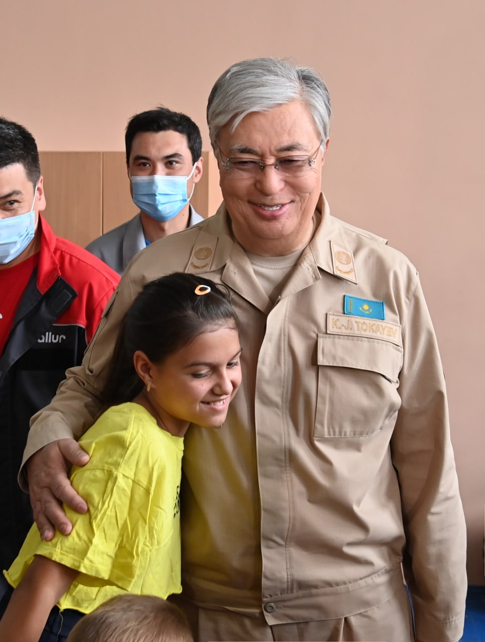 Затем Президент посетил эвакуационный пункт, развернутый на базе школы в селе Аулиеколь, где встретился с пострадавшими гражданами и ознакомился с работой пункта распределения гуманитарной помощи, сообщает Caravan.kz.