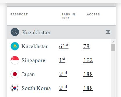 Согласно данным компании, лидерами рейтинга стали паспорта Сингапура, Японии и Южной Кореи, пишет Caravan.kz со ссылкой на Zakon.kz.