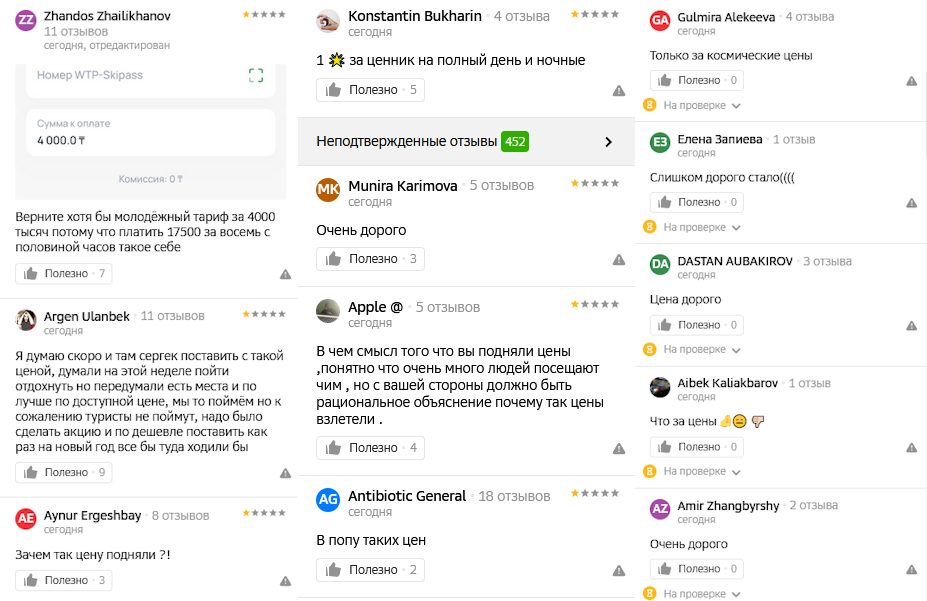 При этом на момент публикации 452 отзыва были помечены как неподтвержденные. После их проверки рейтинг места может упасть еще сильнее. Пользователи массово жалуются на высокие цены.