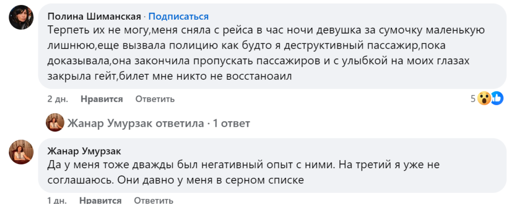 Люди в комментариях также поделились своим опытом взаимодействия с этим перевозчиком: