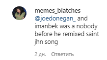 Напомним, что ранее Imanbek стал первым казахстанским артистом в истории, получившим номинацию на премию "Грэмми". Еще одно из достижений Иманбека — его ремикс на Roses вошел в число самых разыскиваемых треков всех времен. За этот год казахстанец обрел поистине мировую славу. В связи с этим редакция медиа-портала Caravan.kz выяснила, что думают об этом его слушатели.