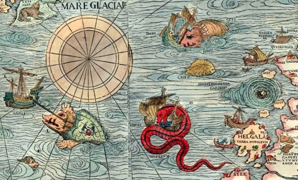 Неизученные земли на старых картах было принято отмечать изображениями чудищ. Сначала в атласах писали Нic sunt dracones, потом рисовали дракончиков, а затем вообще — жутких монстров